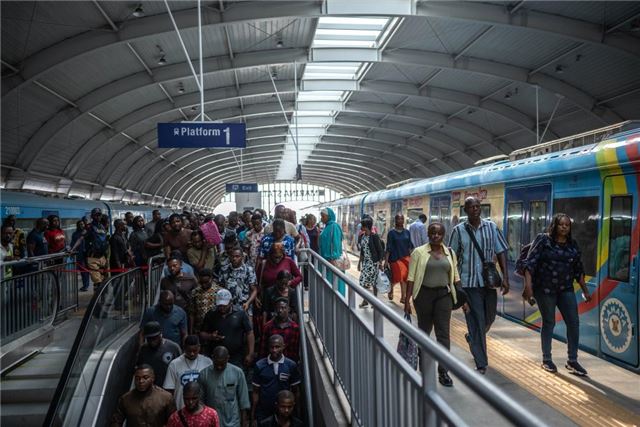 2024年12月2日,在尼日利亚拉各斯,乘客走在轻轨蓝线的站台上。拉各斯轻轨蓝线是西非地区首条由中国企业自主设计、建造、施工、运营的电气化城市轨道交通项目。新华社记者 王冠森 摄