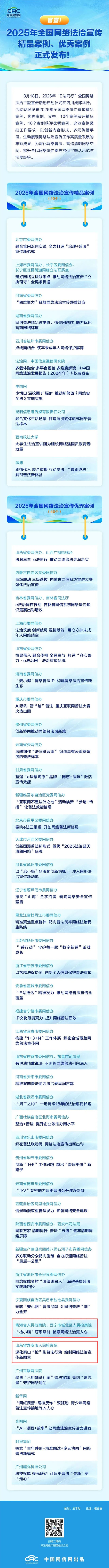 3月18日,2026年“E法同行”全国网络法治主题宣传活动启动仪式在四川成都举行。活动现场发布了2025年全国网络法治宣传精品案例、优秀案例。其中,来自青海省检察院、西宁市城北区检察院的《“检小喵”萌系赋能 检察网络法治更入心》和山东省泰安市检察院的《深化泰山“检”影普法行动 绘制网络法治宣传新图景》入选优秀案例。