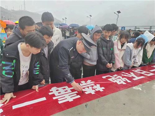 活动中,派出所黄忠涛所长讲解了禁毒的相关法律法规,希望全体家长朋友要以身作则,为孩子们作好正确的教育引导,做好人生的榜样。同时,带领全体师生及家长共同举起右手庄严地宣读了禁毒誓词,并在禁毒宣传横幅上郑重地签下了自己的姓名,表达了自己拒绝毒品、参与禁毒的决心.