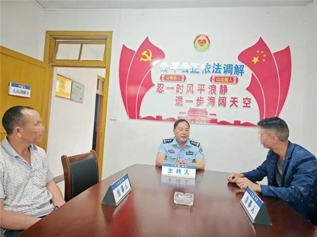 调处中,调解组采取“法理+情理”双线工作法:民警依据《治安管理处罚法》明确责任边界,司法调解员从“六尺巷”典故切入疏导双方商户情绪。讲清远亲不如近邻,邻里抬头不见低头见,要相互谦让,和谐相处。经过半小时耐心调解,双方达成和解。
