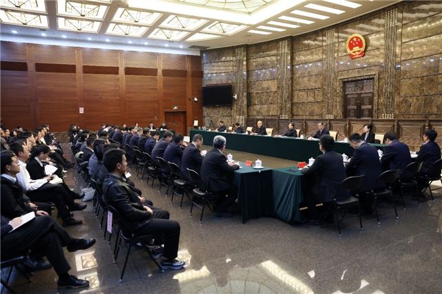 部分法院系统全国两会服务保障工作人员代表参加座谈。孙若丰 摄