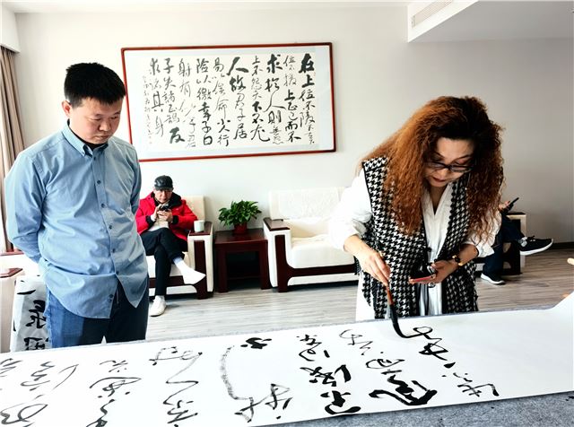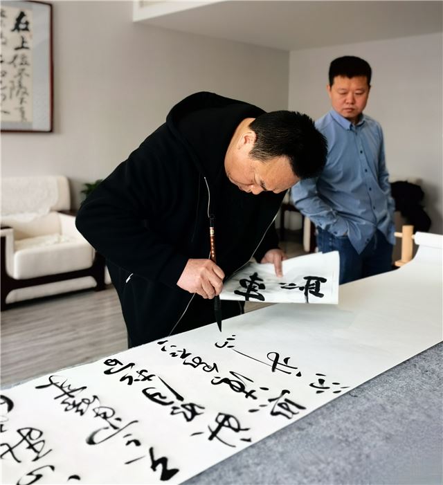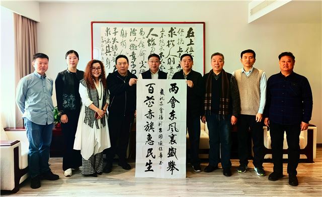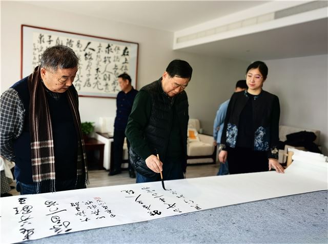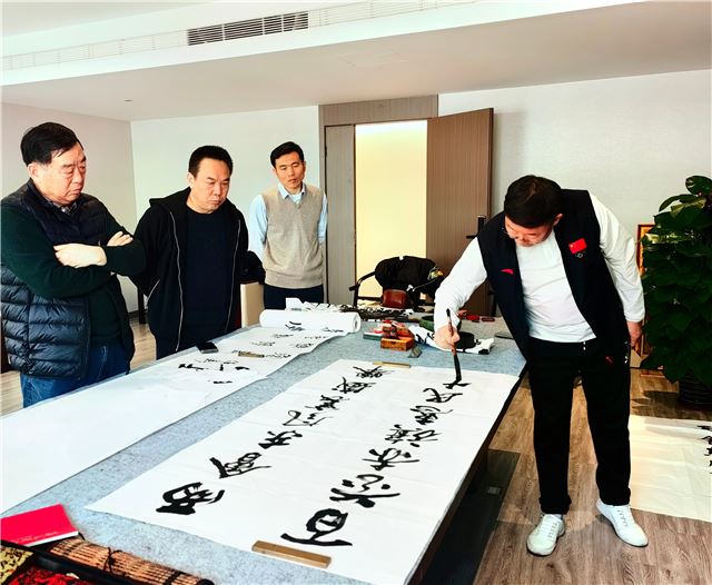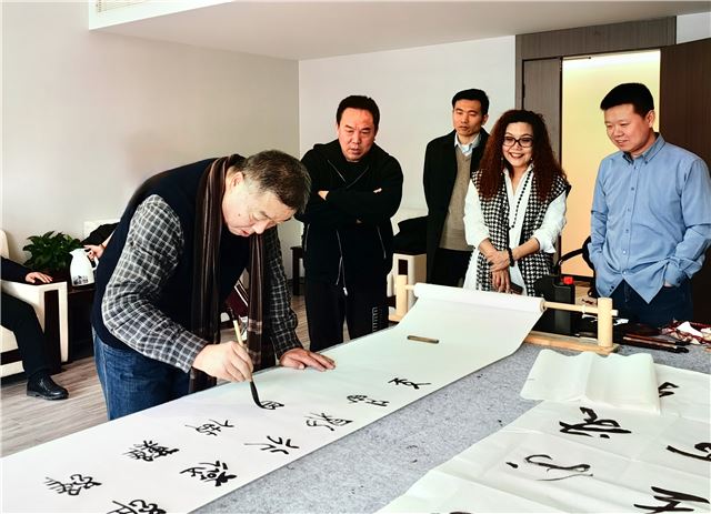 龙年伊始,在即将召开全国两会之际,由中国行为法学会廉政书画院、柳清芬艺术工作室共同组织的“笔开新局颂盛世 墨舞龙岁贺两会”主题笔会在京举办。中国行为法学会廉政书画院院长边保华、副院长--刘安社、孙克利、谢恩品、柳清芬、魏长亮等围绕主题,挥毫泼墨,共同庆祝全国两会召开。此次笔会旨在用传统文化艺术表达新时代中国特色社会主义取得的伟大成就,创作人员还用不同书体联合创作了小长卷向全国两会献礼。中国食品报食品安全发展联盟主席王炳强、中国行为法学会廉政书画院副秘书长徐金虹、柳清芬艺术工作室主任贾瑞胜等有关人员出席了笔会。